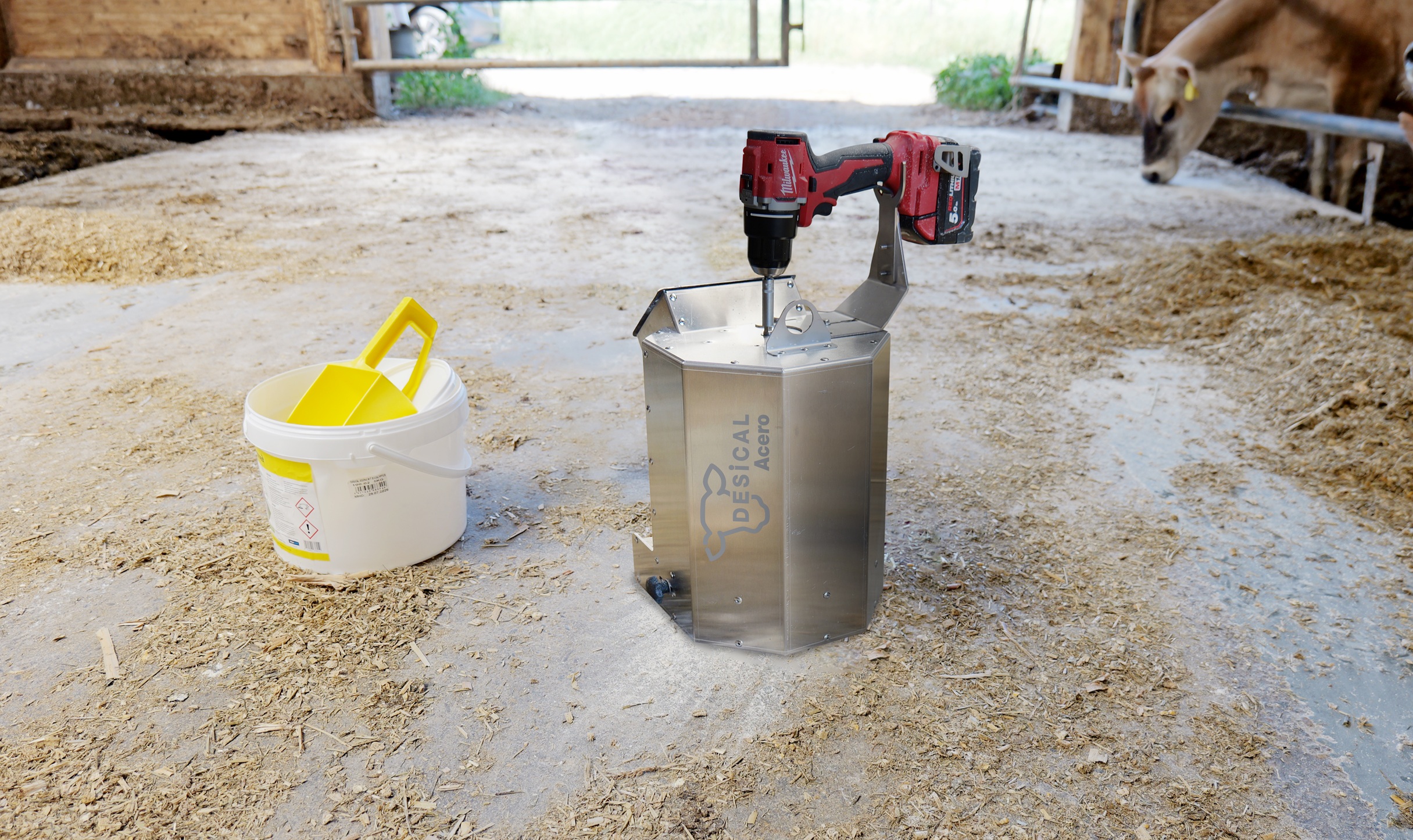 DESICAL® bringt einen eigenen Streuer auf den Markt. Der neu entwickelte DESICAL® Acero ersetzt bisherige Kunststoffstreuer innerhalb und außerhalb des Stalls und ist zum Patent angemeldet. Der Clou: Er passt an jeden Akkuschrauber.