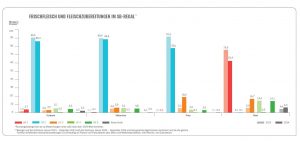 Mit 14,1 % erreicht die Haltungsstufe 5 bei Rindfleisch – sowohl an der Bedientheke als auch im SB-Regal – den höchsten Wert unter allen Fleischsorten. Auch die Haltungsstufe 3 „Frischluftstall“ legt deutlich zu.